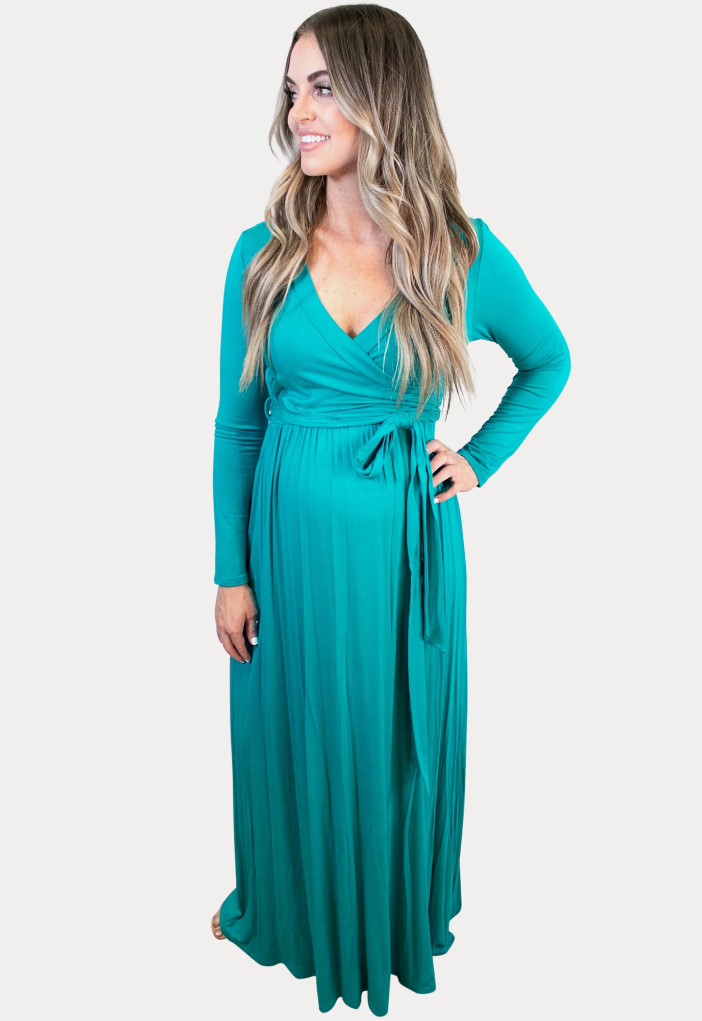 A flattering tie front maternity maxi that every mama needs! Features an adorable sweetheart neckline and a tie front. Did we mention how cozy it is too! We know those are definitely essentials for maternity clothes! It’s the perfect dress for a quick and flattering date night look. A total win throughout pregnancy and beyond!