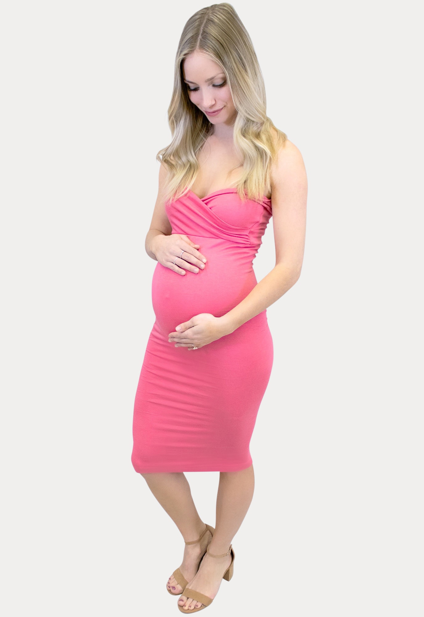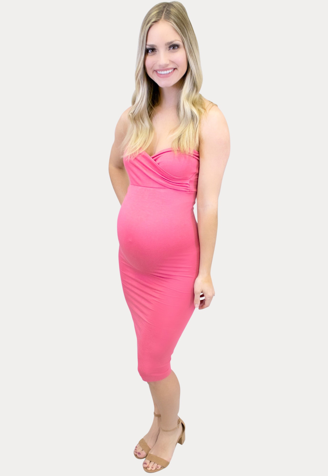 Strapless Sweetheart Maternity Dress, yes please! This tube top maternity dress is a great Sexy Mama basic staple with the classic sweetheart neckline you’ve been seeking. Constructed of our premium stretch fabric, designed specifically with mama curves in mind. It hugs all the right places and still leaves a smooth, flattering appearance. A perfect layering basic, and a popular choice for a casual baby shower. Perfect throughout pregnancy and beyond!