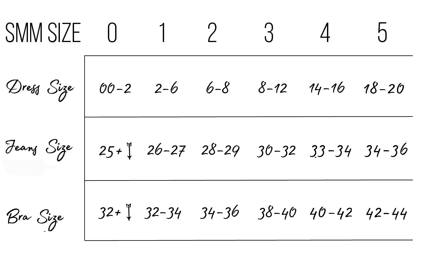 *The 4 B’s (Bust, Butt, Bump, & Body Type) play a huge role in sizing up or down when mamas are bordering a size. Sexy Mama Maternity Stylists can help find the perfect maternity sizing for you! In general and when in doubt, size up. If you are curvy, busty or are carrying multiples size up. If you need alterations based on height contact us and we can likely accommodate.