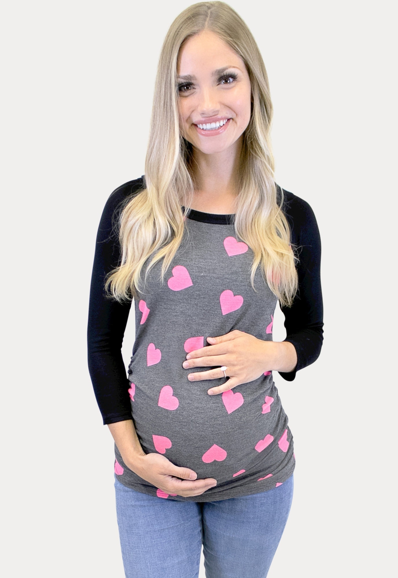 3/4 Sleeve Heart Baseball Maternity Tee
