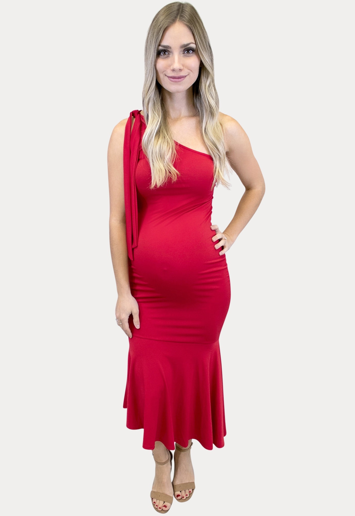 One Shoulder Flare Maternity Dress in Red